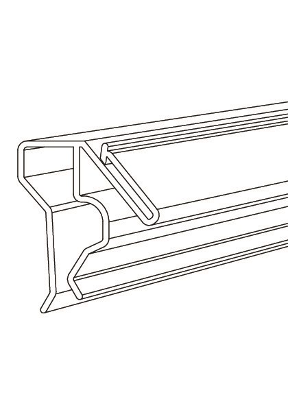 For wire shelves. Horizontal wire can be either on the front or the back of the shelf front. A separate front for paper or ESL is attached via HL’s click-interface.
