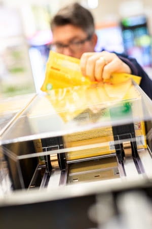 The Slow Pusher Tray’s box design, combined with a controlled pusher, helps prevent sweeping while keeping products front-faced and easy to shop.